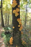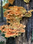 I came upon an awesome discovery. Laetiporus sulphureus – Chicken-of-the-Woods mushroom. It was growing on a 12 foot tall oak stump. Here are a few photos of the orange and yellow fungus.